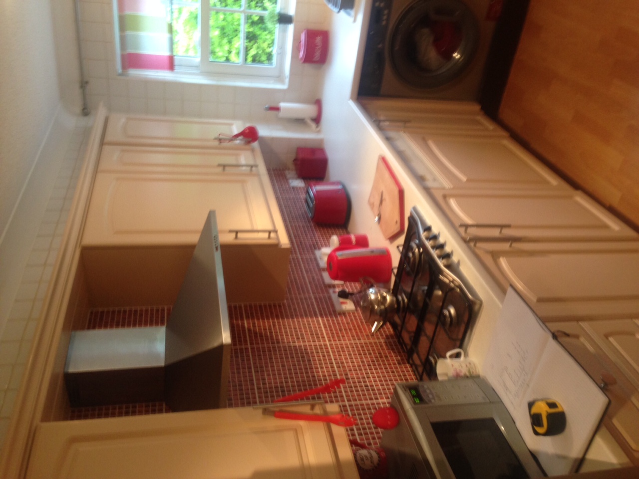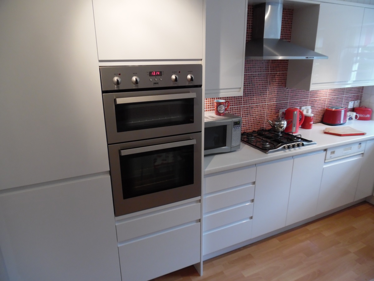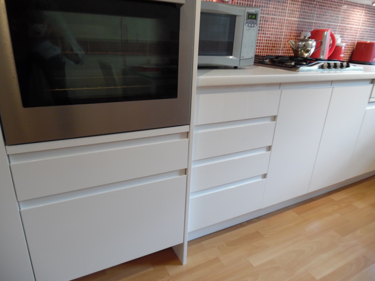 We decided to use white gloss handleless doors and the reason for this was that we felt it would modernise the kitchen, lift the overall brightness and compliment the already existing red tiles and white worktop. It was instantly noticeable the difference that the gloss door fronts brought to the overall mood and look of the room.