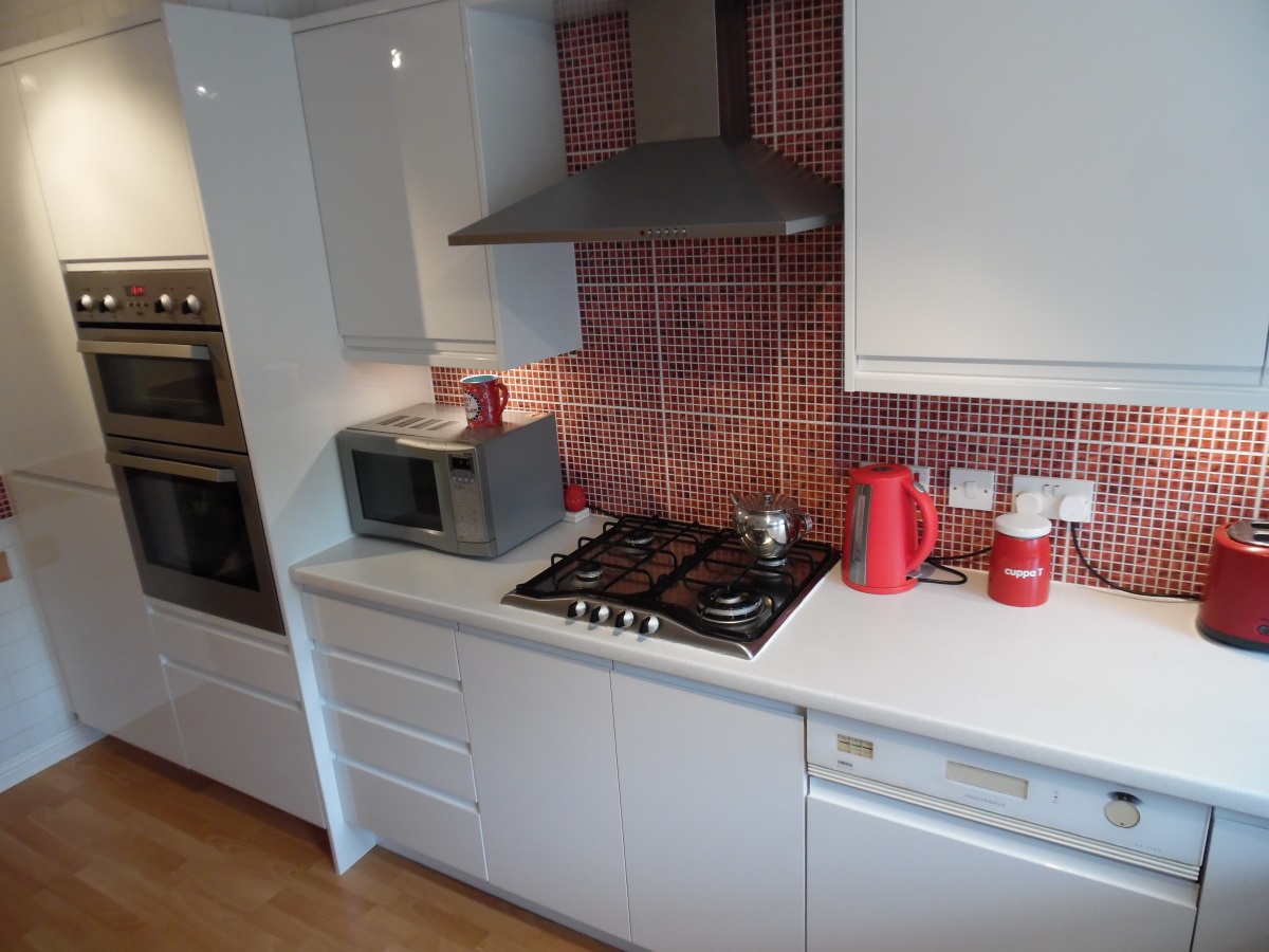The original kitchen was very traditional and slightly tired looking and so we felt that an injection of life was needed to modernise the space and give it the “wow-factor”. The customer had painted the original doors and sides of the cabinets so it was our aim to create a very upmarket and classy look with the clever use of gloss panelling to hide any original DIY work that had been done. A budget of £2,800 – £3,100 was set.