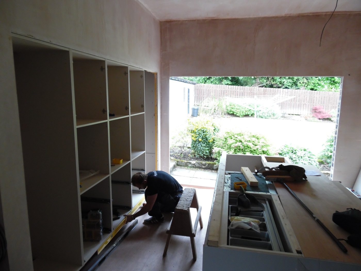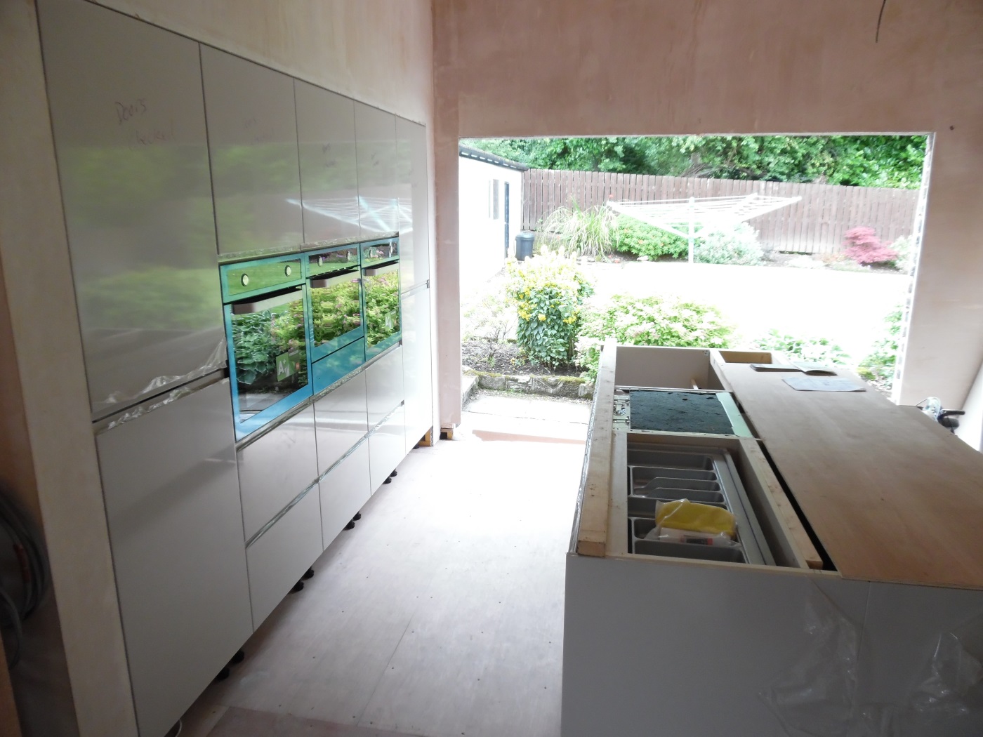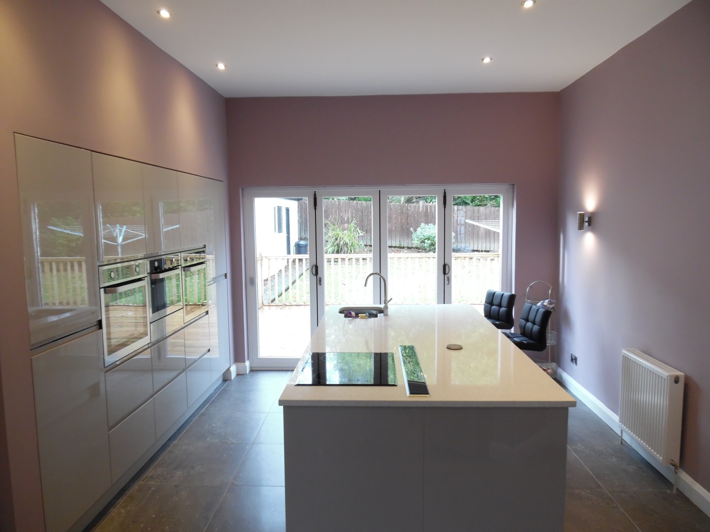 The small rear window at the back of the house would be replaced with bi-folding doors that would open on to decking in the garden. As the kitchen was being re-located to a different area of the house we had to move all of the plumbing and electrical services for the new appliances and ambient lighting.